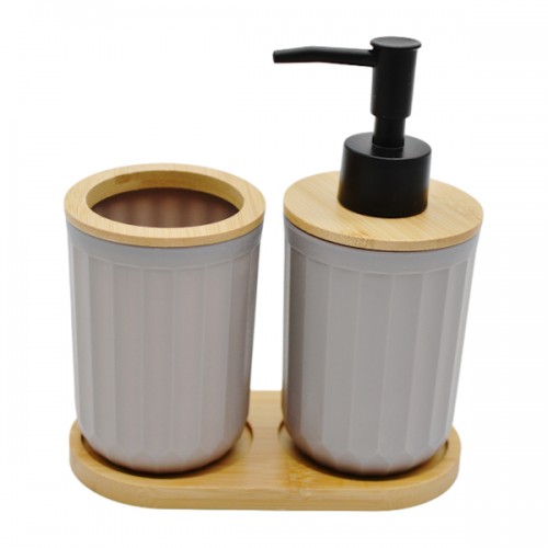 Набір д/ванної Стакан+Дозатор 2шт Пластик/Дерево підставка Мікс