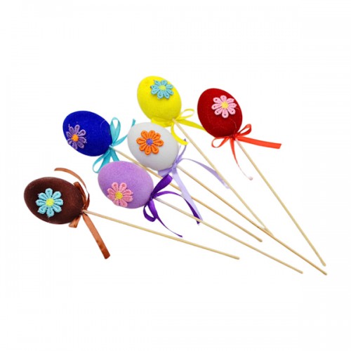 Пасхальне яйце на шпажці флоковане/квіти 6см 1шт (6шт)