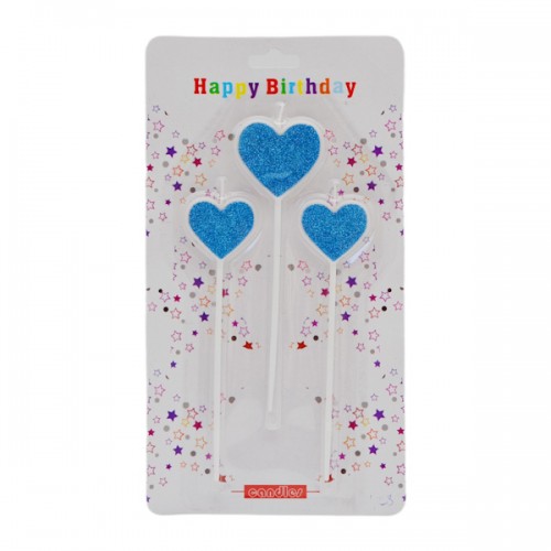 Набір свічок д/торта декор Серце з глітером 3D 3шт 16см