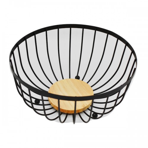 Фруктовниця металева каркасна 25см 1шт Чорна дерев'яна вставка арт.A16-019